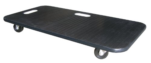 Fiberwood construction dollies feature a rubber padded surface and two hand holes to carry the unit. The PVC edge strip protects walls from scrapes. Units roll on four swivel wheels which are non-marring and oil-resistant. Deck measures 36" length by 24" width by 5-1/2" height.